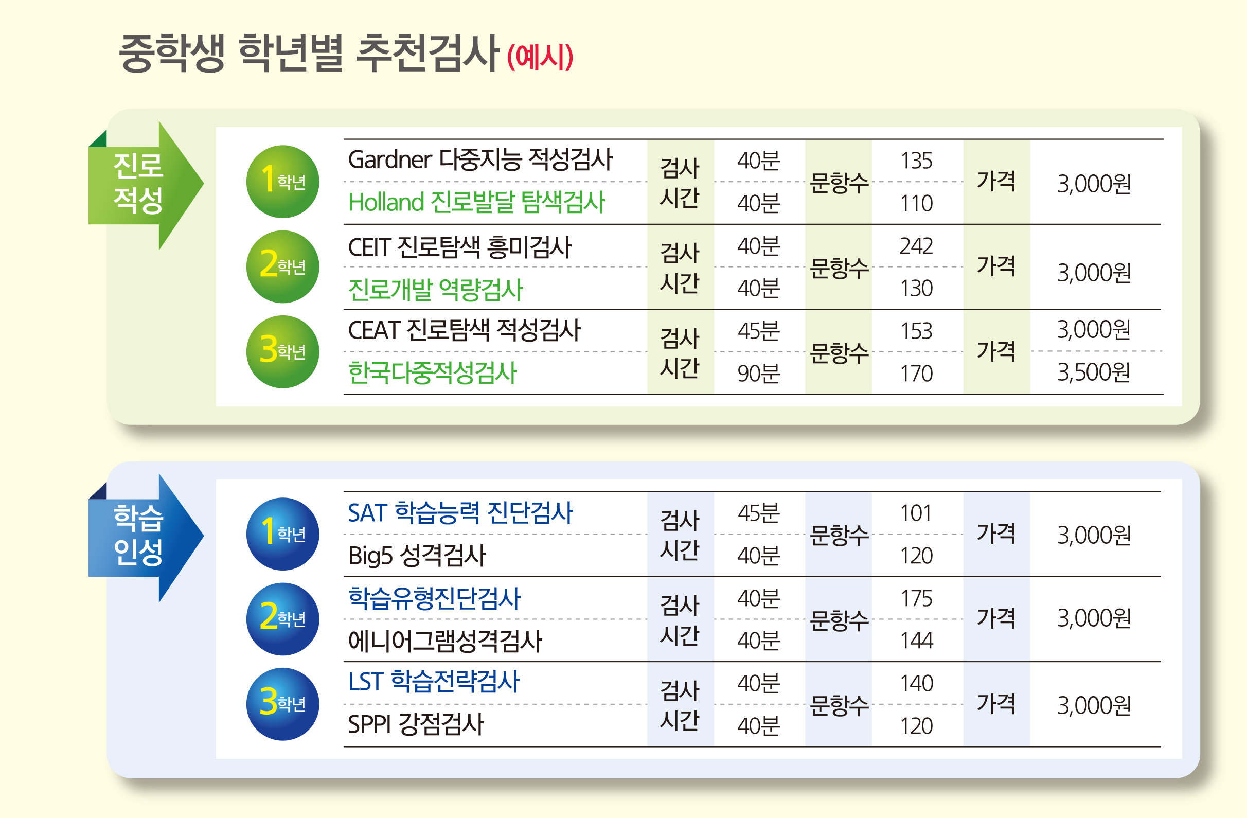 big5성격 kmpi다요인인성 창의인성 강점검사 에니어그램 대인관계역량 진로발달탐색 진로탐색흥미 진로탐색적성 다중지능 직업가치관 진로개발역량 한국다중적성 학습능력 학습유형 학습전략 다요인지능 진로인성 진로학습전략 진로학습유형 강점다중 학습인성 학습종합
